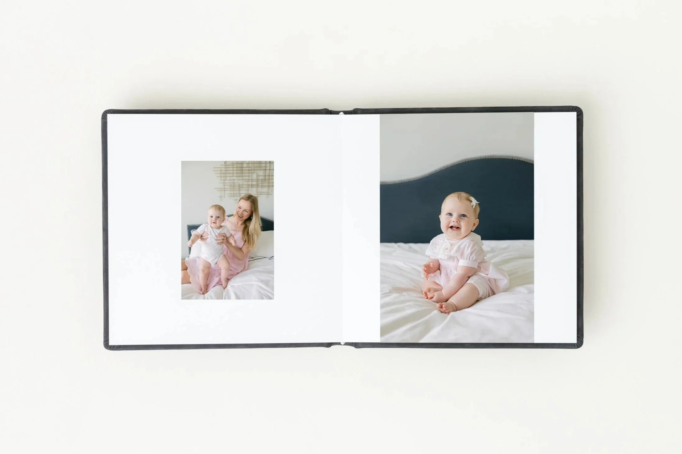 Albums are where your story comes together, page by page. Designed with intention and printed on archival materials, each spread is thoughtfully curated to reflect the emotion and connection captured during your session.
